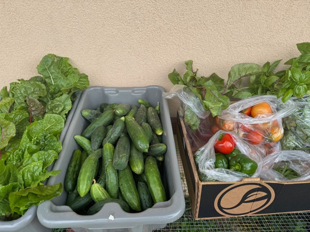 Here are few photos of the latest harvest from our vegetable garden: 106 pounds of tomatoes, cucumbers, Swiss chard, beets, string beans, and peppers. All of our harvests are donated directly to Lunch Break in Red Bank. This growing season, we have donated 837.5 lbs of fresh organic produce to them. And, there are many more harvests to come. If you're interested in helping us grow and donate food for the needy, stop by the garden on Tuesday or Saturday mornings at 9:30 am.